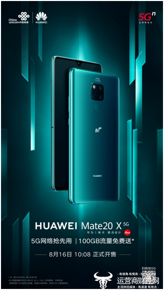 作为国内首款获得5G进网许可证的手机,华为首款5G旗舰Mate 20 X (5G)于8月16日震撼上市,中国联通官网及全国各大营业厅同步开售。好手机配好5G,买5G到联通!联通5G与华为手机的完美结合,势必会给广大用户带来5G的极致体验。