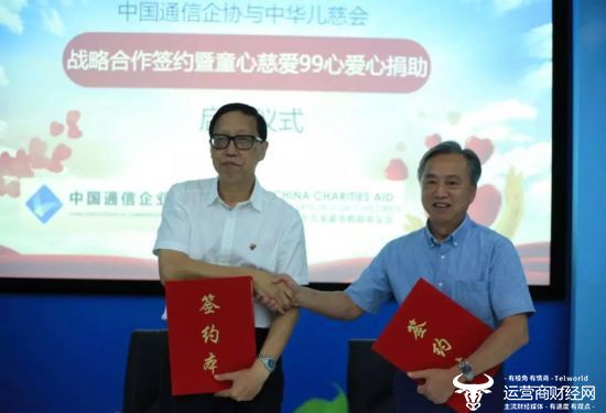 2019年8月19日上午,中华少年儿童慈善救助基金会(以下简称:中华儿慈会)与中国通信企业协会战略合作签约暨“童心慈爱-99心”爱心捐助启动仪式在京圆满举办。