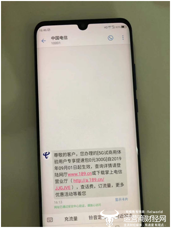 如图,本次体验的5G卡与传统SIM卡无异,配有两个大小尺寸,可根据不同手机型号进行匹配。在实际操作中,我们将SIM卡插入卡槽开机后,便收到了来自中国电信的提示短信,按照短信指引即可开通5G体验流量包,非常便捷。