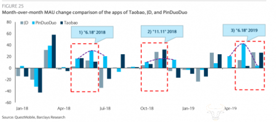 ▲报告分析称,拼多多能够在大促结束之后的几个月里依然保持强劲的用户增长