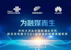 在本次发布会上,中科大洋副总裁商同、中国联通网研院副院长迟永生、华为技术有限公司产业发展副总裁燕兴共同签署了联合打造5G+超高清融媒体演播系统合作协议。三方将共同推进广播电视与新媒体一体化发展,充分发挥在5G通信领域、IT系统集成领域、媒体节目生产领域的优势,迅速提升媒体用户的新媒体生产、传播能力,加快内容生产发布体系升级改造,不断提升超高清(4K/8K)节目制作能力水平。