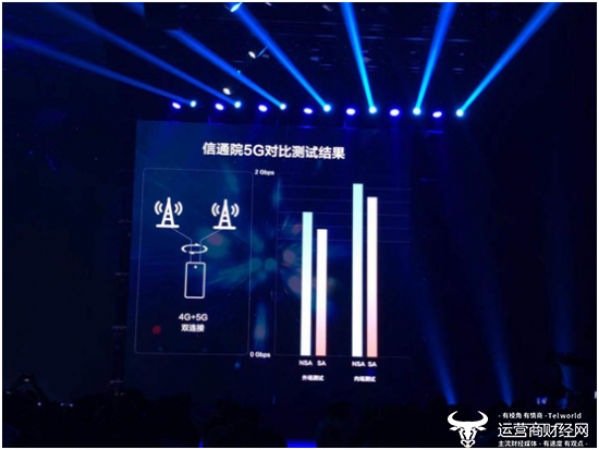会上,他放出了一张NSA与SA的对比测试结果图,他表示从外场和内场的测试对比中,NSA并不比SA差,甚至优于SA,同时NSA还具有众多好处,例如在网络铺设上更便捷,价格更低廉并且网速也具备相当的优势...