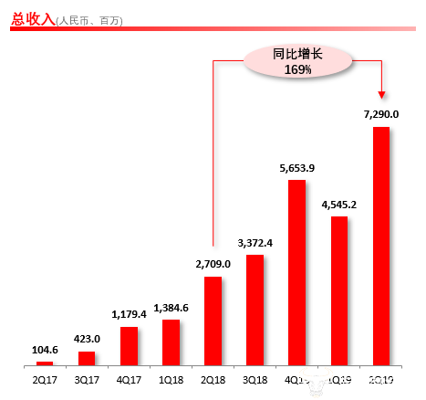 二季度,拼多多实现营收72.90亿元,较去年同期的27.09亿元同比增长169%,较今年一季度的45.452亿元,环比增长60%;
