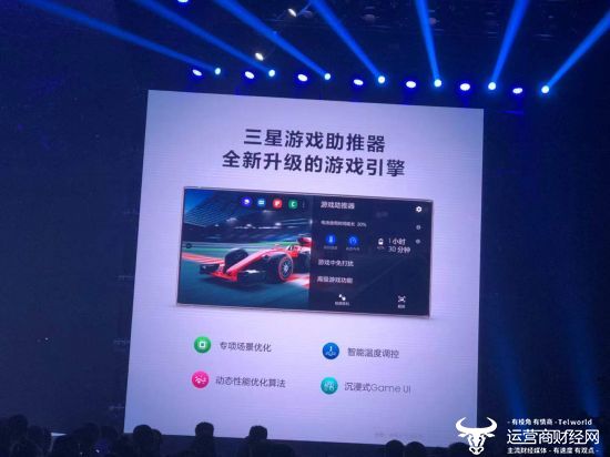 现场他重点介绍了三星全新升级的游戏引擎,其游戏助推器的高性能能够保证玩家游戏的流畅性以及强大的续航能力和散热性能,并拿到了权威机构颁发的游戏高性能五星级证书。