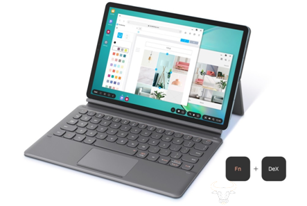 三星Galaxy Tab S6还对DeX模式进行了升级,并可单独购买专用键盘(Book Cover Keyboard)。专用键盘除了采用SPen笔架、自由角度支架等配置,还新增了一个DeX功能键,用于直接启动或关闭三星DeX,让应用更便捷。