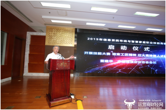 8月29日上午,“2019年信息系统布线与智慧家庭职业技能竞赛启动仪式”在北京辰茂鸿翔酒店举行。中国通信企业协会会长苗建华、中国通信企业协会通信网络运营专业委员会高级顾问朱立军、中国通信企业协会通信网络运营专业委员会主任靳东滨、中国通信企业协会副秘书长柏国林、中国通信企业协会通信网络运营专业委员会秘书长范贵福、中国智慧家庭及社区技术与应用联盟秘书长王玺以及中国电信、中国移动、中国联通、中通服、中通建、中移铁通等单位领导以及本次竞赛支持企业负责人、媒体代表、行业专家参加了本次启动仪式。