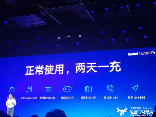 不仅如此,卢伟冰指出Redmi Note 系列是迄今为止最大电量手机,Redmi Note 8 Pro拥有4500mAH超大电量,正常使用,可以两天一充。