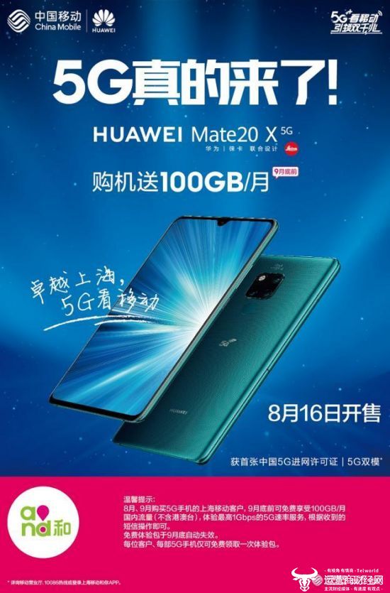 上海移动表示,自8月13日起至9月30日将推出短期5G免费体验套餐,通过国内正规渠道购买5G手机的中国移动用户,将免费获赠每月100GB通用流量,最高1Gbps的5G速率体验服务,不需要换卡、换号。