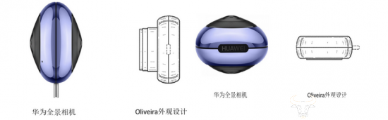(注:Oliveira外观设计专利和华为Envizion360全景相机摄像头对比)