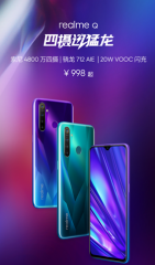在影像上,realme Q采用了4800万像素索尼 IMX 586 主摄像头+119°超广角镜头+4cm微距镜头+人像镜头的四摄组合,带来越级的影像体验。在性能上,搭载高通骁龙712 AIE处理器,具备高通Adreno 616 GPU和第三代AI处理引擎,提升性能的同时,实现了更长的续航时间;配备4035mA超大电池,带来超长续航,更有VOOC闪充 3.0,支持20W快充,帮助realme Q快速回血。
