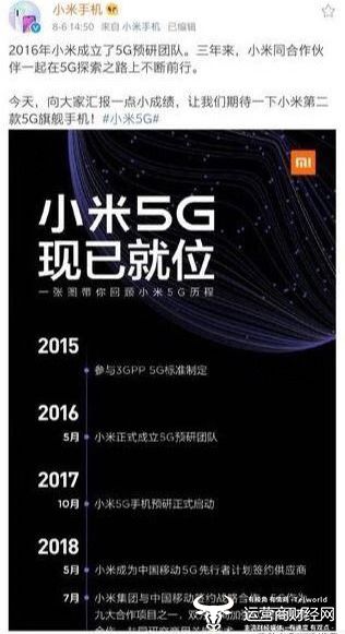 运营商财经网从多个运营商内部材料里已获悉,小米5G手机即将上市,型号名称为MI 9S,即小米9S。