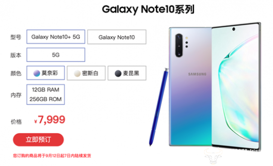 综合来看,三星Galaxy Note10系列的产品配置无愧于年度机皇的称号。此次,三星Galaxy Note10售价6599元、Galaxy Note10+ 5G价格为7999元,用户可在三星网上商城、京东、天猫、苏宁、国美等三星手机官方旗舰店,以及三星线下指定活动门店购买,三星将于9月12日开始为购机消费者陆续发货,并有多重购机好礼相赠,机会难得,不可错过。