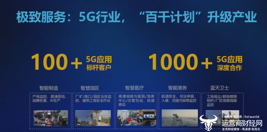 与此同时,中国电信百千计划打造的极致服务,旨在通过100+5G应用标杆客户、1000+5G应用深度合作,共同助推建设5G产业生态圈和5G融合应用圈。
