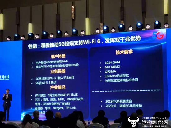 陆良军指出,中国电信积极推动终端支持Wi-Fi6,发挥双千兆优势,预计将在2019年第四季度展开试验,2020上半年实现旗舰5G手机支持。