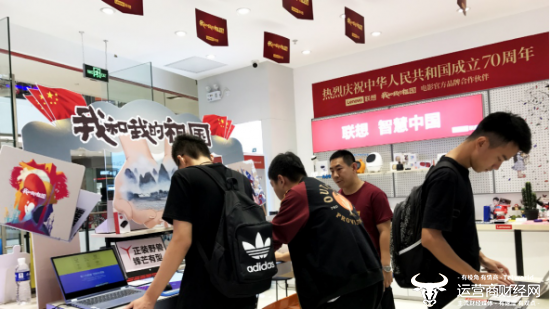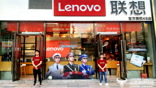国庆将至,联想“我和我的祖国”国庆系列活动正式启动,12城13店同时换装:店门口悬挂上国旗,灯箱、电子壁纸、横幅、吊旗、橱窗贴等装饰物也都换上电影《我和我的祖国》主题元素,以实际行动为祖国庆生。