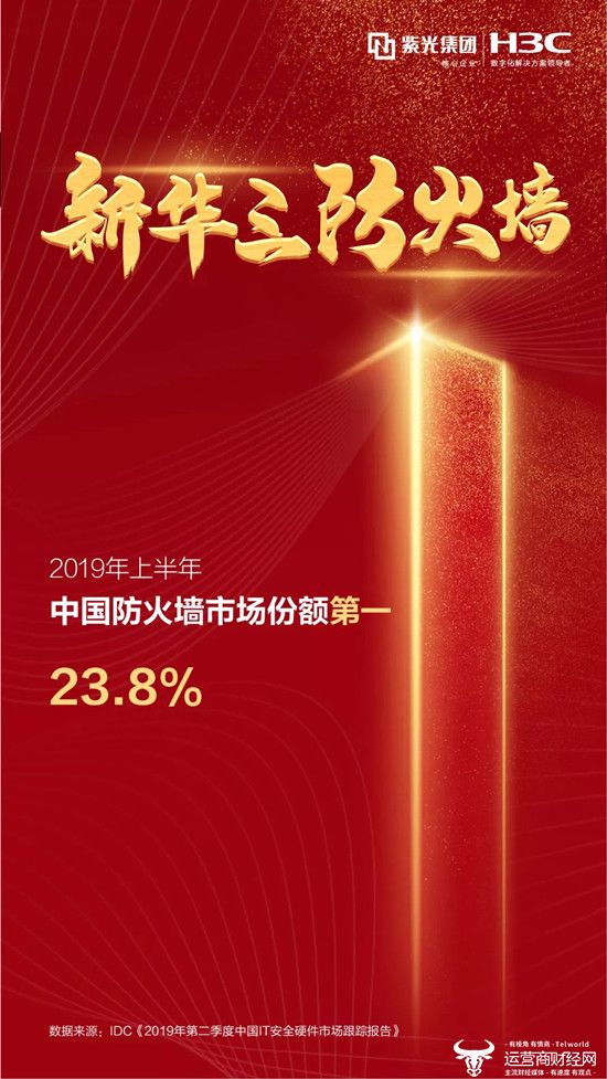 近日,全球权威市场研究机构IDC发布《2019年第二季度中国IT安全硬件市场跟踪报告》,紫光旗下新华三集团的防火墙产品以23.8%的市场份额赢得2019年上半年中国防火墙市场份额第一。