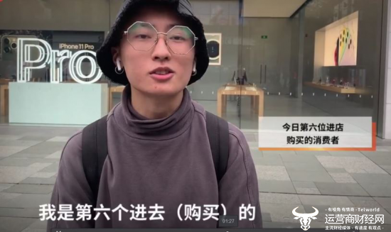 首批买家中的一名男青年说,他是给他妈妈买,他自己等明年出了5G版再买,他是一个苹果手机的爱好者,从第一代iPhone手机开始他都有。