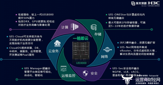 作为承载云HIS的核心数字化平台,新华三集团发布的全新一代UIS 9000相较于上一代产品实现了50%的性能提升,DRX、GPU资源池能够轻松应对医疗业务高峰与影像处理等业务需求。此外,UIS 9000配备的UIS多层次的技术创新能够全面支持县域医共体的建设和部署。