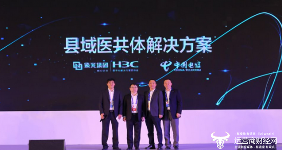 9月19日,中国电信2019天翼智能生态博览会举行期间,中国电信携手紫光旗下新华三集团合作发布县域医共体解决方案,为当前医共体的建设打造高效可靠安全的数字化平台,加速县域医共体的部署和落地。中国电信集团政企客户部副总经理刘玉明,新华三集团联席总裁韩志刚、新华三集团中国区副总裁何宁等出席本次发布仪式。