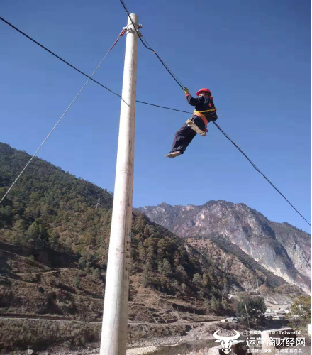 中国电信凉山分公司员工在木里县建设村村通网络工程,在大山深处架设通信光缆