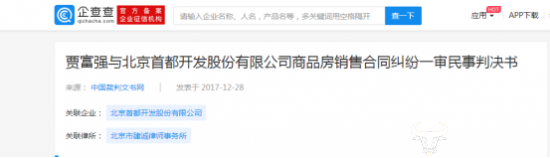 据企查查显示,贾富强与北京首都开发股份有限公司商品房销售合同纠纷一审民事判决书如下: