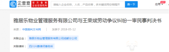 据企查查显示,雅居乐物业管理服务有限公司与王荣斌劳动争议纠纷一审民事判决书如下:
