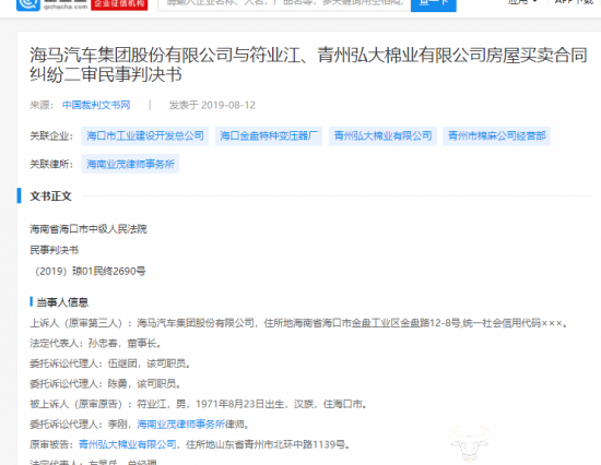 自今年4月开始,海马汽车集团走上卖房救车求生路,401套房产现在共卖出156套。日前,运营商财经网在企查查上了解到,海马竟因一套不属于自己的房产惹上买卖合同纠纷,整个过程让人啼笑皆非!