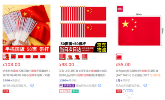 新中国成立70周年举国欢庆,要问时下什么商品是网上热销的爆款,你猜对了,就是国旗!京东大数据显示,国庆前一个月国旗类商品销售额竟然是去年同期的近40倍,充分体现了消费者为祖国庆生的热情。