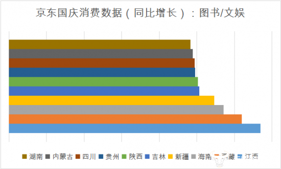 有人爱户外撒欢儿,有人则看静静地享受读书和其它文娱项目的乐趣。京东全站图书和文娱品类的下单金额同比增长2.99倍,其中江西、西藏、海南、新疆和吉林的需求增长最快,说明在全中国的各个地区,人民群众对精神享受的追求日益提升,而当地文化娱乐建设已有长足的进步。