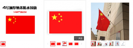 为了满足消费者的需求,商家开发的国旗商品类型也花样翻新。即使是手摇小国旗,也开发出“纳米防水”、“抗晒涤纶”、“伸缩旗杆”等不同的材质规格,满足消费者不同场景下的应用。