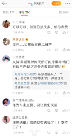 运营商财经网发现,此次东风日产中止与NBA合作虽然要付出极大的代价,但东风日产此番宣告更获得了广大消费者的赞誉,树立了爱国车企的好形象,在官博下方,运营商财经网发现,不少人士都表示支持东风日产,甚至还称“知道你损失多,要去买车”,这或许对东风日产来说也是失之东隅收之桑榆吧!
