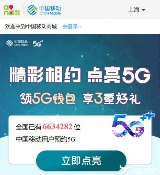 上海移动和你APP的点亮5G活动页面显示,用户自领取5G套餐折扣优惠之日起三个月内如订购中国移动全网统一套餐,则订购后可连续6个月享受套餐费折扣。网龄越长优惠越多,网龄5年及以上享7折优惠,网龄5年以内享8折优惠。