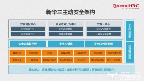 为适应网络安全形势的变化,新华三集团一直自致力于依托完整的数字基础设施能力,云计算、大数据及AI的能力,以及创新开放的生态建设,构建“主动发现、预知未来、协同防御、智能进化”的主动安全防护体系,真正实现“全栈感知”、“意图分析”和“使能驱动”。