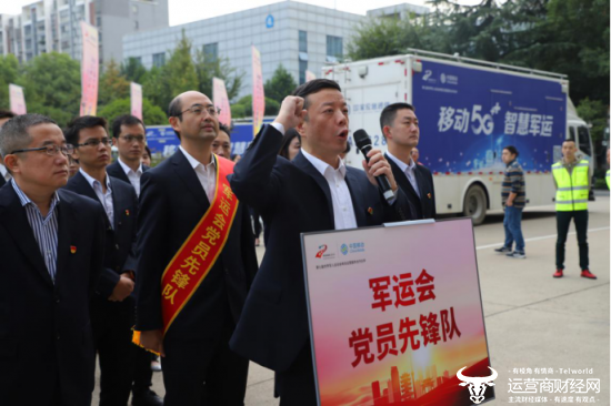 誓师大会上,湖北移动总经理范秉衡依次向党员先锋队、军运会网络突击队、军运会热线保障队及军运会服务保障队授旗帜,4支队伍进行了庄严的宣誓仪式。他们表示,将忠于使命、忠于职责,发挥党员模范带头作用,为党旗增辉添色;用专业的精神、用专注的态度,提供超一流水准的网络服务;用最真挚的情感、用最真诚的服务,让四海来宾感受军运热情;将精诚团结、全力以赴,展现熠熠生辉的移动风采。