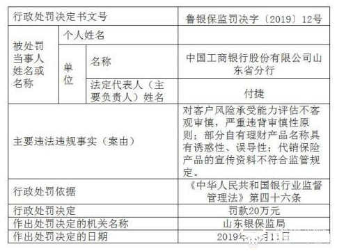 近日,工商银行山东地区三个分行一天内因多项违规作出了行政处罚,其中,工行山东省分行被罚20万元,济南分行被罚90万元,日照分行被罚款20万元。