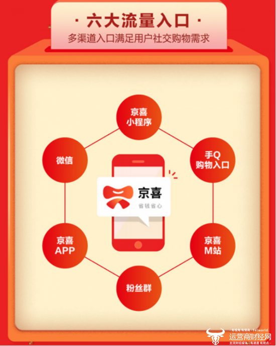 京喜是区别于京东主站现有模式的全新平台,实现了“人”、“货”、“场”的差异化互补。京喜聚焦于下沉市场新兴消费群体,通过高质价比好货及丰富的社交玩法,刺激用户多级分享,赋能商家低成本引流及用户转化,为用户带来省钱省心的购物体验。