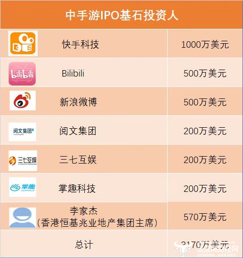 强大的基石投资阵容力挺中手游IPO