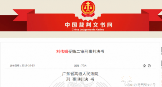 同时,刘伟娟系从犯,有自首、积极退赃等情节,但受贿数额特别巨大,综合考虑其犯罪情节、后果、社会危害性及在共同犯罪中的地位作用、悔罪态度等因素,一审法院以受贿罪对刘伟娟判处有期徒刑三年,并处罚金400万元。广东高院对此结果予以了维持原判。