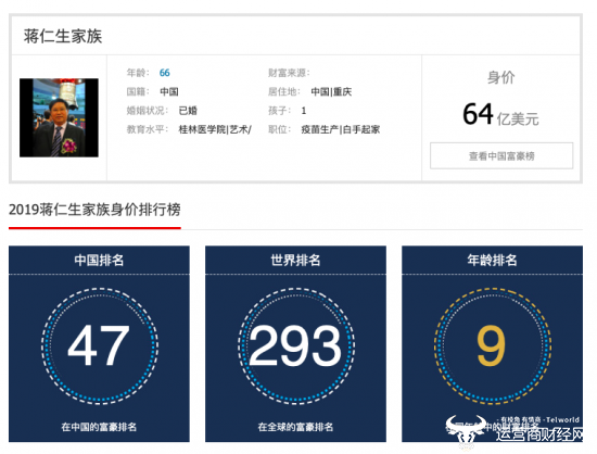 近日,胡润研究院发布了胡润百富榜。其中,智飞生物实控人蒋仁生及其家族财富达到520亿,在医药领域财富排名第六位,百富榜中排行第50位。