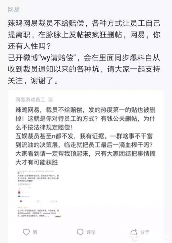 我觉得每一个维权和反抗的声音都应该被听到,而不是被压制,被辟谣,被逐个击破。单个声音可能很容易被掩盖,但是汇聚在一起,应该就不容易让人忽略了。所以我搜集了网易被裁员工的一部分发言,附在了文章的后面。