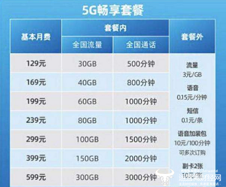 5999档,用户可享300MB流量,以及3000分钟国内通话时长,而套餐外的流量按照3元/GB收费,还可享受2张副卡的权利。