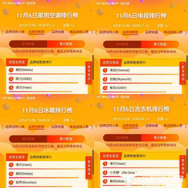 侯恩龙指出,双十一战事过半,悟空榜榜首之争相当激烈。空调品类美的第一,彩电品类海信第一,冰洗品类海尔第一,家电第一渠道感谢各大品牌商的勠力同心。