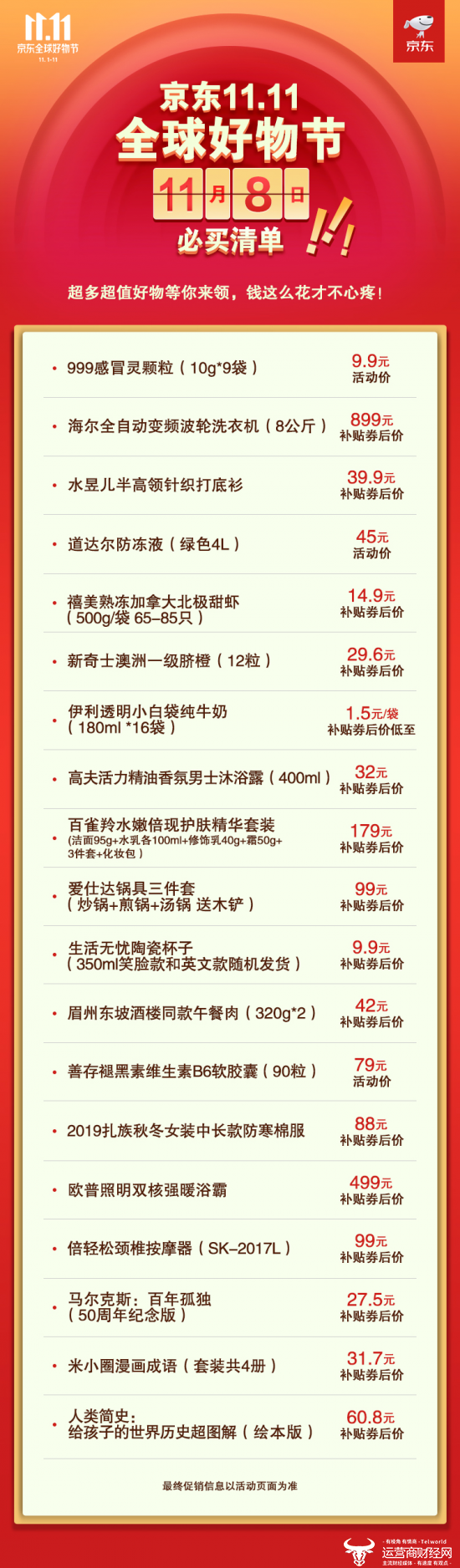 11月8日的爆款主题可以一言以蔽之:爱家爱生活,便宜有内涵。
