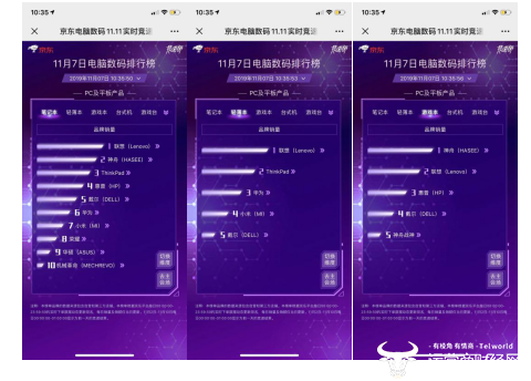 从今日的竞速排行榜来看,前有大牌头部梯队牢牢站稳电脑数码霸主地位,后有黑马品牌趁势直追,赛况可谓精彩纷呈。在局势最为动荡的PC品类,联想凭借电脑数码品类日诸多爆款新品再度出击,占领了笔记本、轻薄本、台式机、游戏台式机、一体机的五榜销量榜首,再现其霸主实力;神舟表现依然不俗,在游戏本品类中夺得销量冠军。