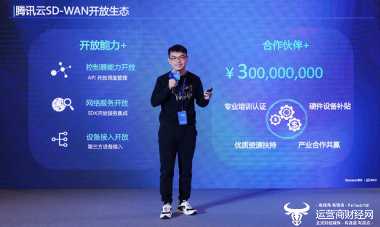 腾讯云始终秉持着开放的生态战略,通过能力开放、合作伙伴支持来实现产业合作共赢。在现场,腾讯云宣布将拿出3亿元构建SD-WAN合作伙伴计划,从专业认证、硬件补贴、优质资源扶持等方面支持合作伙伴,最终建立一站式的服务生态。