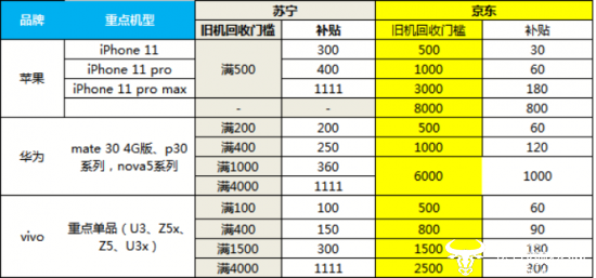 (图:苹果华为vivo手机以旧换新补贴力度苏宁VS京东)