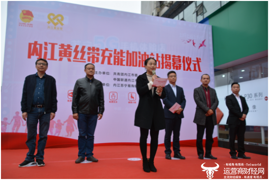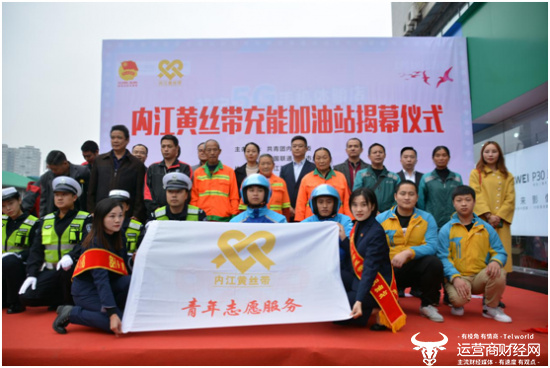 11月8日,在共青团内江市委的主导下,由中国联通内江市分公司联合内江日报社、内江残疾人联合会、内江市志愿者协会、内江市城管局、内江市交警支队、苏宁易购川南地区管理中心等多家政府、企事业单位举办“内江黄丝带充能加油站”揭幕仪式,首批在联通内江公司、苏宁易购公司12家营业场所设立的户外工作者“充能加油站”正式启用并对外开放,为社会劳动群体提供便民服务。