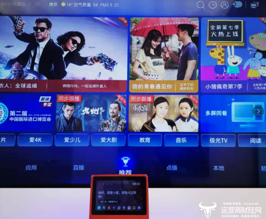 工作人员告诉记者,中国电信已打通智慧家庭TOP生态,目前已实现和百度、腾讯、小米等多家智能音箱的对接,不仅提供小翼管家APP操控天翼高清,还支持多种智能音箱语音控制天翼高清,动动口就能点播各类热门影视大片、综艺节目。