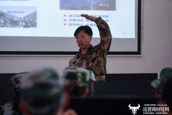 ▲中国工程院朱有勇院士正给学员们上课。电商班开课期间,所有教师和学员将统一身着迷彩服参加培训。
