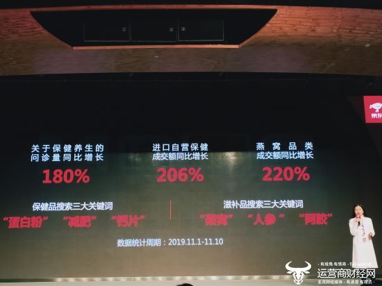 11月11日第一个小时,京东互联网医院在线问诊量同比增长45倍;截至早上7点,营养保健总成交额同比去年11月11日增加64.77%,环比11月10日增长6倍;截至早上8点,冈本003白金10片装成交额已超过去年全天总额;截至上午10点,进口保健同比去年增长113%,其中,知名品牌澳佳宝成交额同比去年增长275%,知名品牌movefree成交额同比去年增长128%,知名品牌HealthyCare成交额同比去年增长142倍;截至上午11点,燕窝品类成交额同比增长160%,其中知名燕窝品牌燕之屋成交额同比增长200%;截至上午11点,京东健康体检服务类商品成交额同比增长47%,其中,为父母购买体检套餐的订单量同比增长390%。